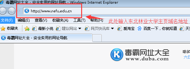 (1)浏览器网址栏内输入域名http://www.nefu.edu.cn,进入东北林业大学主页。