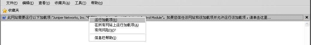 (5)遇到下图(浏览器拦截栏阻止了VPN插件),右键点击提示栏并选择“运行加载项”。