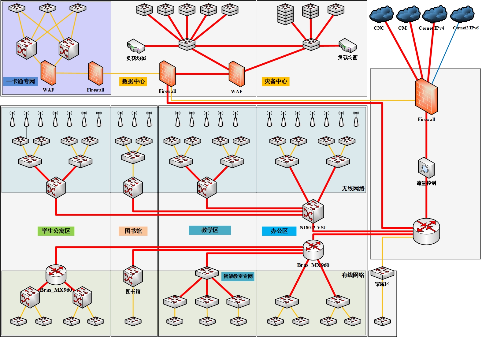 1995年东北林业大学开始筹建校园网,1996年校园网正式接入中国教育和科研计算机网,是首批接入CERNET的高等院校之一。自2013年以来多次对校园网络核心和出口设备进行全面升级,经过多年的建设,学校现已拥有中国教育和科研计算机网、中国联通和中国移动三个网络出口,接入带宽分别为3Gbps、3Gbps和9Gbps,总接入带宽达到15Gbps,同时接入了IPV6网络。校园网络已经覆盖了学校教学、科研、行政管理和学生公寓的所有楼宇及部分家属区域。校内主干链路达到了10Gbps,各楼宇间实现了高速互连,形成了“万兆骨干、千兆备份、百兆到桌面”的万兆多业务校园网络。校园网络现有网络信息点数21000余个,师生用户达两万余人。学校现已形成了一个设备先进、布局合理、安全可靠、快速畅通的校园计算机网络。为学校的现代化教学、科研和管理创造了优良的网络基础环境。初步建成了教学现代化、管理科学化、学习自主化、校园信息资源共享化、信息国际化的数字化校园基础平台。