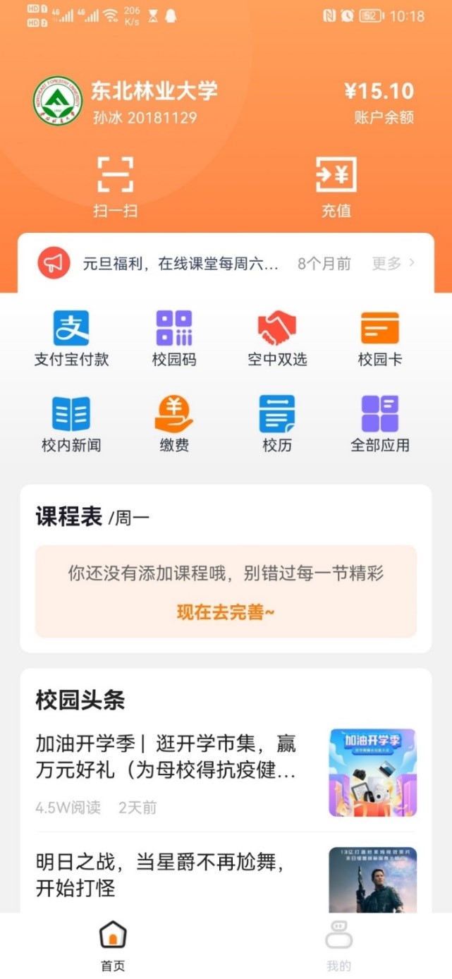 1、使用手机客户端APP“完美校园”为校园卡充值。
