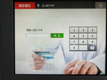 图6点击新办签约并输入校园卡消费密码 图7输入需要绑定的交通银行卡号,确认无误后点击确定。