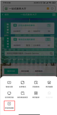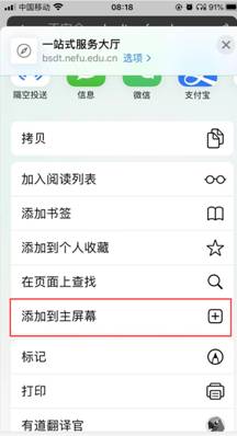 点击下方红色框的图标,点击添加到主屏幕,桌面就会出现快捷图标。