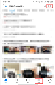 二、进入浏览器主页。点击下面图片扫一扫功能,扫描下方二维码。