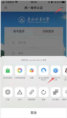 4、苹果手机,用微信扫一扫功能,扫描二维码,点击在Safari中打开,登录。