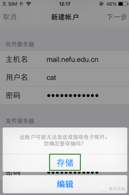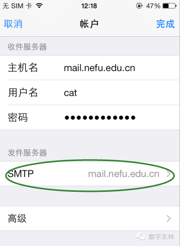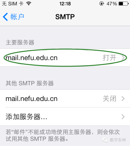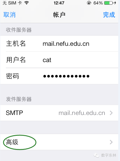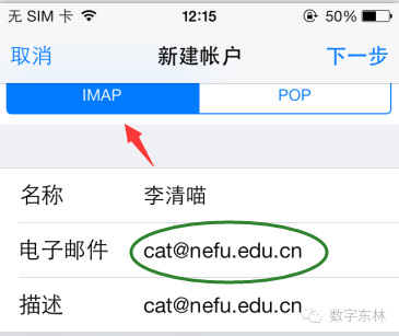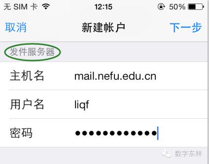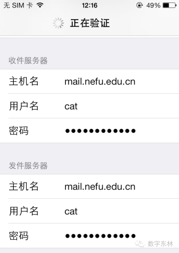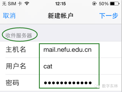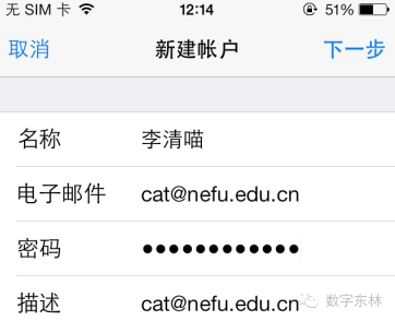 iPhone自带邮箱如何添加东北林业大学邮件系统:
