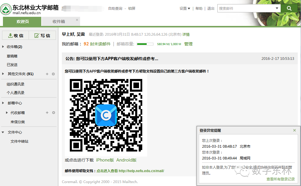 6、邮件手机客户端下载,可以登录邮件系统后,扫描二维码下载。