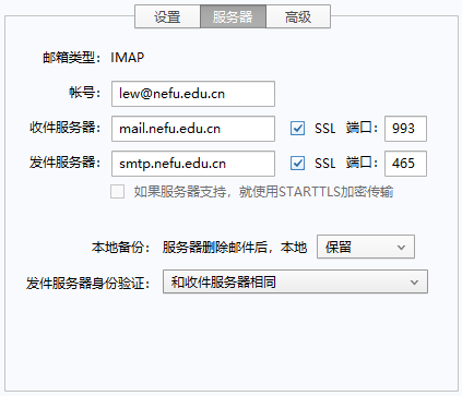 IMAP服务器填写:mail.nefu.edu.cn SSL 端口993