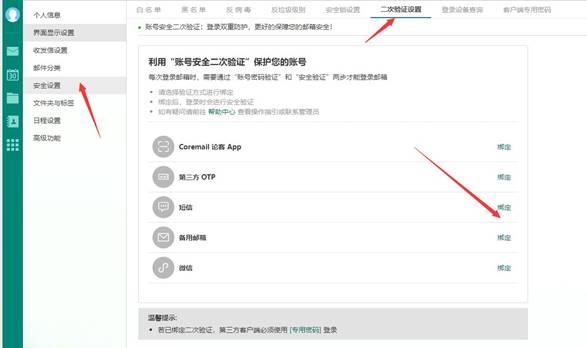 一、邮件系统绑定手机步骤