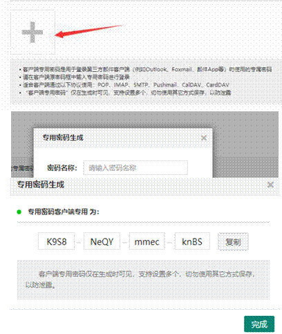 2)点击这个十字图标,弹出下方页面起一个名字,点击 生成,自动生成一串密码,在第三方客户端上只用这个密码 登录就可以了