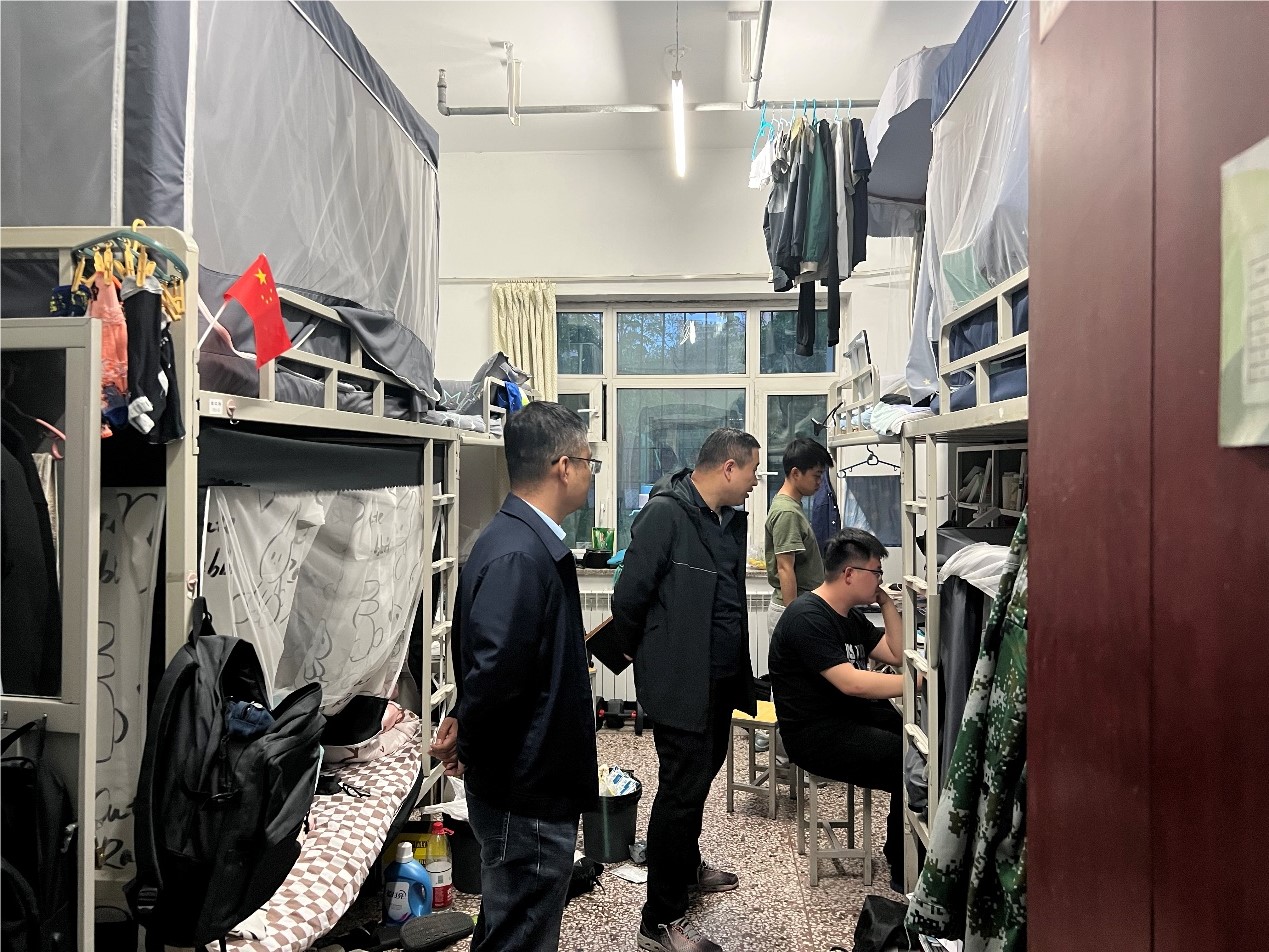 为深入开展学习贯彻习近平新时代中国特色社会主义思想主题教育,全面提升学生公寓网络(尤其是无线网络)服务质量。2023年5月18日19:00,数字化建设处(网络信息中心)由副主任景维鹏、总工程师周锋带领技术人员郭永双、牟永超,开展了学生公寓网络使用情况的调研活动。旨在客观了解同学们使用移动、电信、联通运营商提供的光纤宽带网络情况,并评估运营商宿舍网是否能够满足现阶段同学们的学习和生活需求。